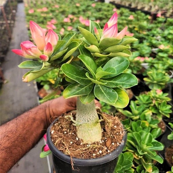 Adenium Bonsai 2 Set ek beautiful bonsai plant combo hai, jisme thick caudex aur naturally shaped branches hoti hain. Ye plants apni attractive look aur seasonal flowers ke liye jaane jaate hain. Kam paani mein grow hone wala ye bonsai indoor bright light ya outdoor sunlight dono ke liye suitable hai. Home décor, garden display aur gifting ke liye perfect choice.